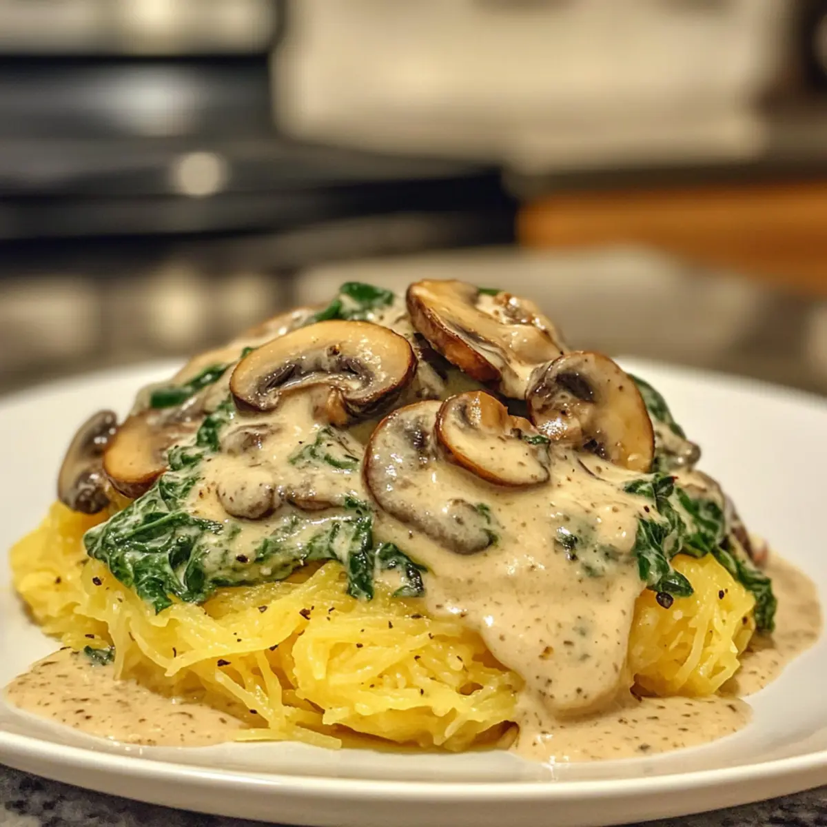 Imagine, if you will, the earthy aroma of sautéed mushrooms blending seamlessly with the gentle bitterness of fresh spinach, all enveloped in a luxuriously creamy sauce. You might even find it hard to believe that this dish is vegetarian, gluten-free, and low-carb! Whether you’re looking to impress your dinner guests or simply enjoy a quiet evening with a nourishing meal, this recipe is perfect for anyone seeking a delicious escape from the usual fast-food routine. Get ready to twirl your fork into those tender strands of spaghetti squash — your taste buds will thank you!