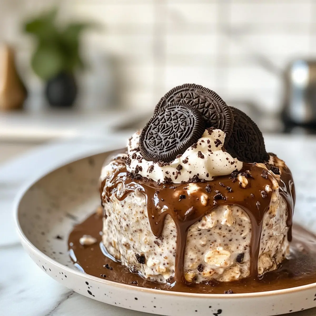 5. Finish & Serve: The next morning, give the oats a good stir and top with extra crushed Oreos, a dollop of yogurt, or a drizzle of syrup if desired. Enjoy chilled or let it sit at room temperature for about 10 minutes for a softer consistency!