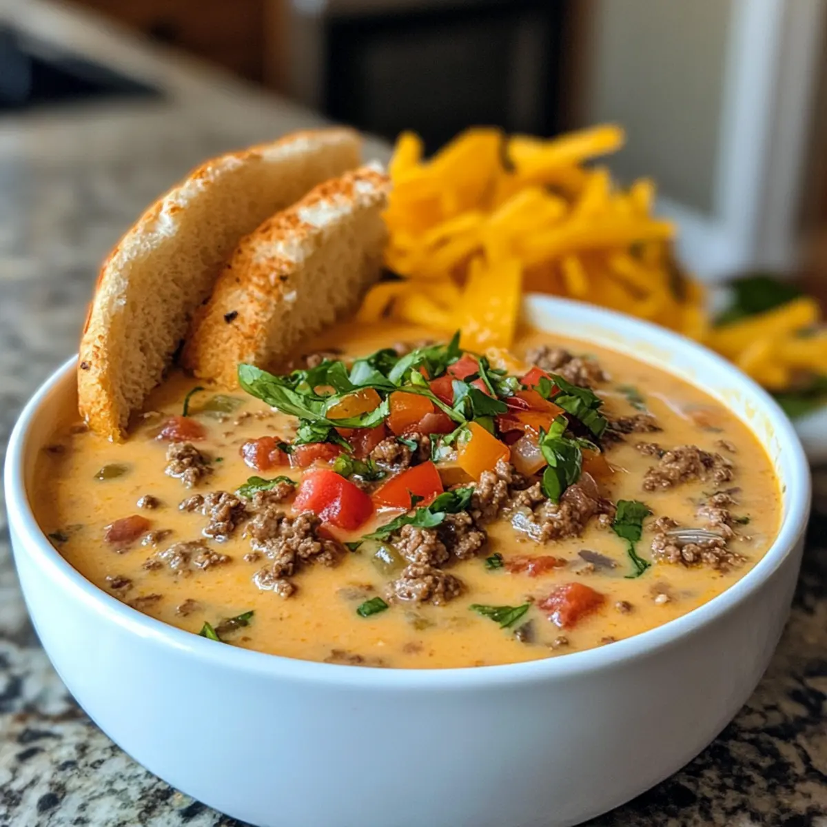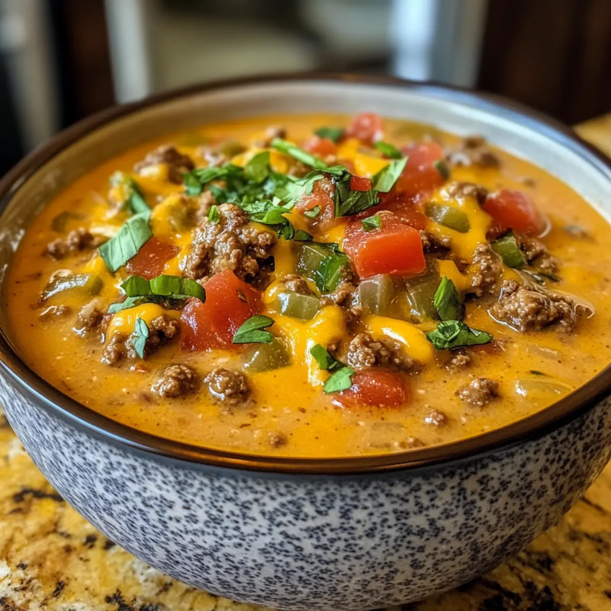 Dive into the comforting goodness of this Hearty Homemade Cheeseburger Soup, and enjoy creating your delicious bowl of warmth!