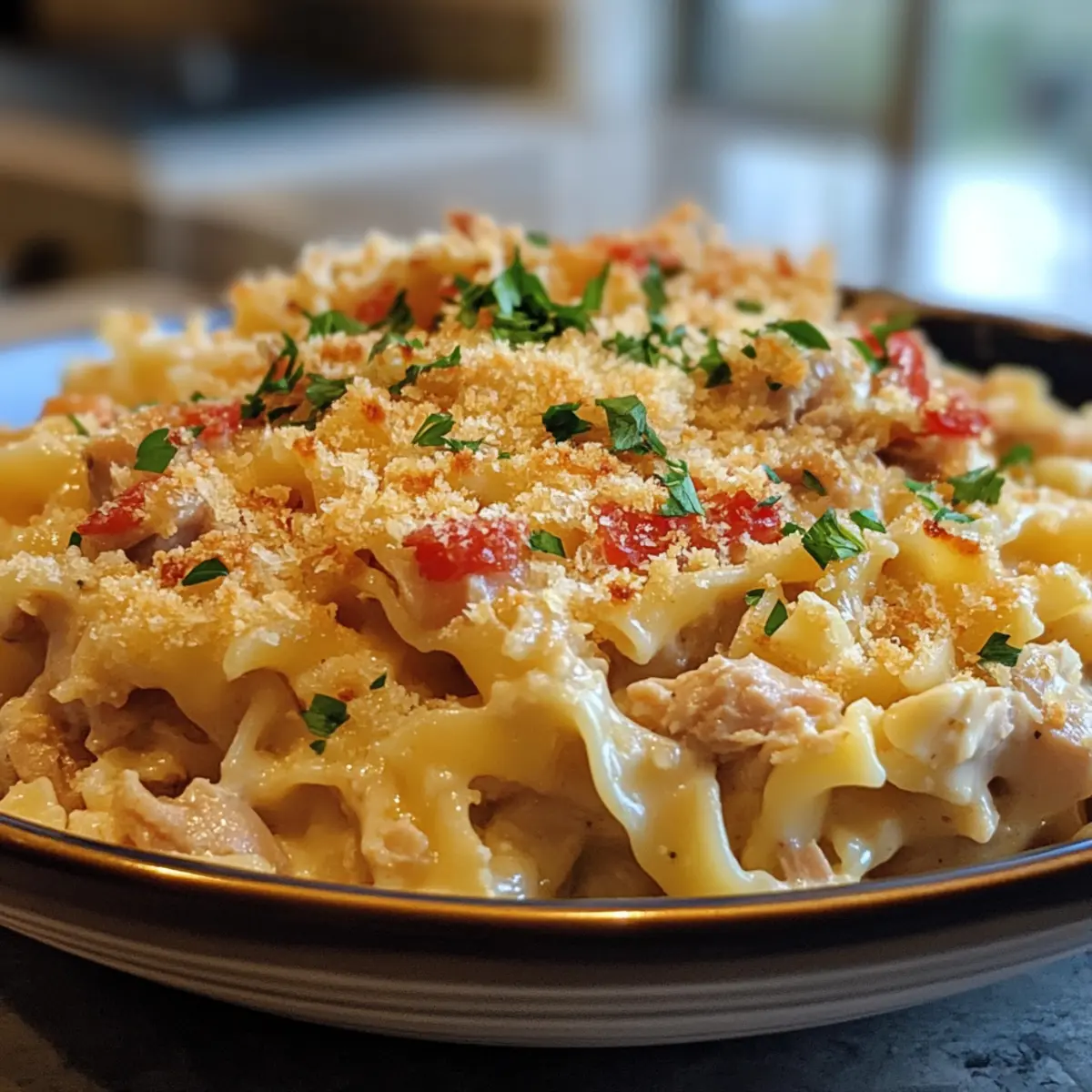 Melt the remaining tablespoon of butter and mix it with the breadcrumbs. Sprinkle this buttery goodness evenly over the casserole for a delightful crunch.