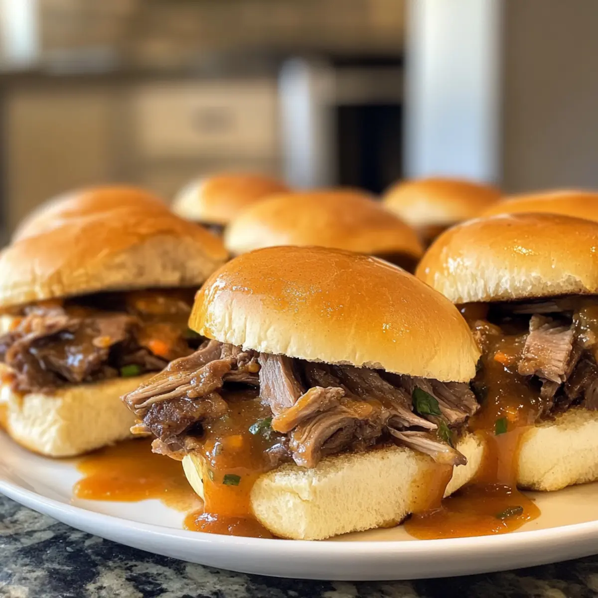 • No Soggy Buns: To prevent sogginess, toast the inside of the slider buns before layering on the shredded beef. This will keep them sturdy and delicious.