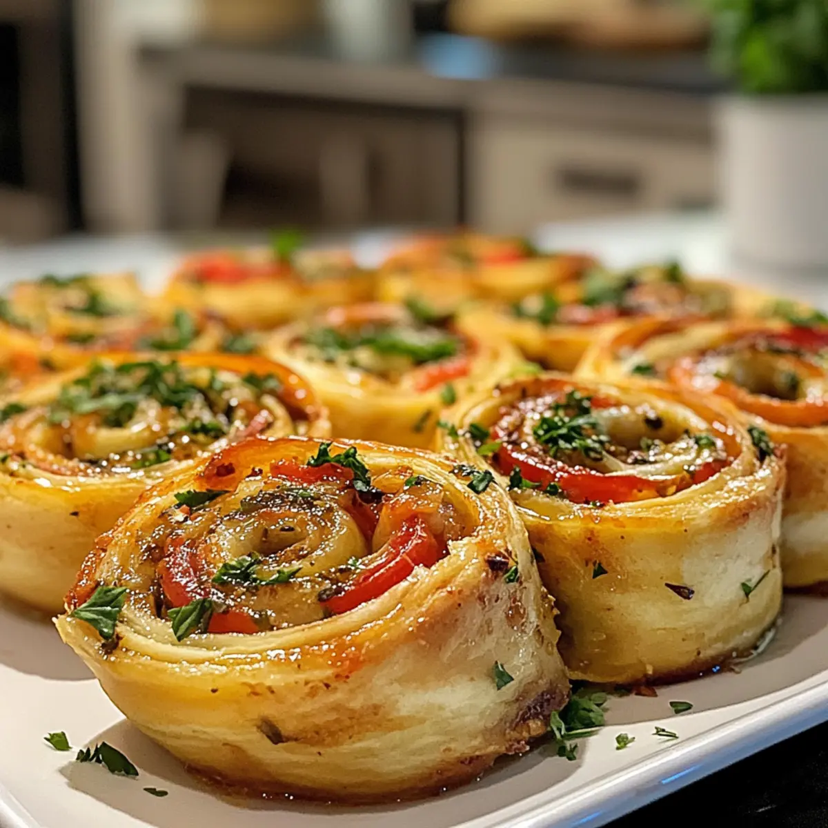 Savory Italian Pinwheels are easy-to-make appetizers that blend crispy crescent dough with Italian deli meats and gooey mozzarella, perfect for gatherings.