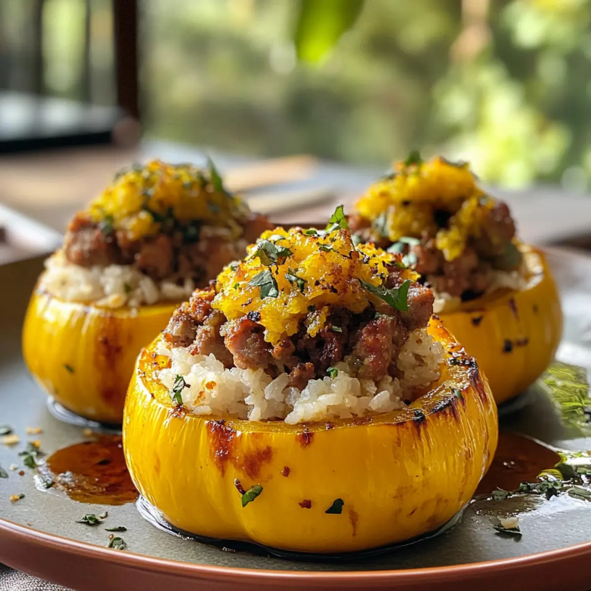 Irresistibly Savory Stuffed Patty Pan Squash with Sausage and Rice