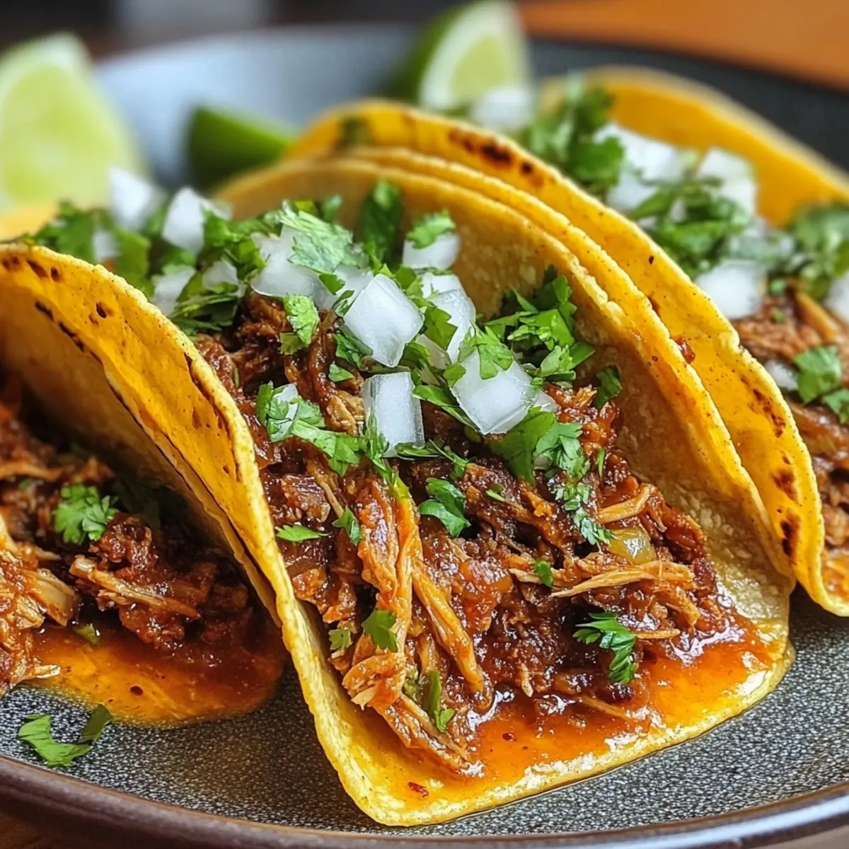• Assemble the Tacos: Fill each crispy tortilla with generous amounts of shredded beef. Top it off with diced white onion, fresh cilantro, and a squeeze of lime juice for that refreshing zing!