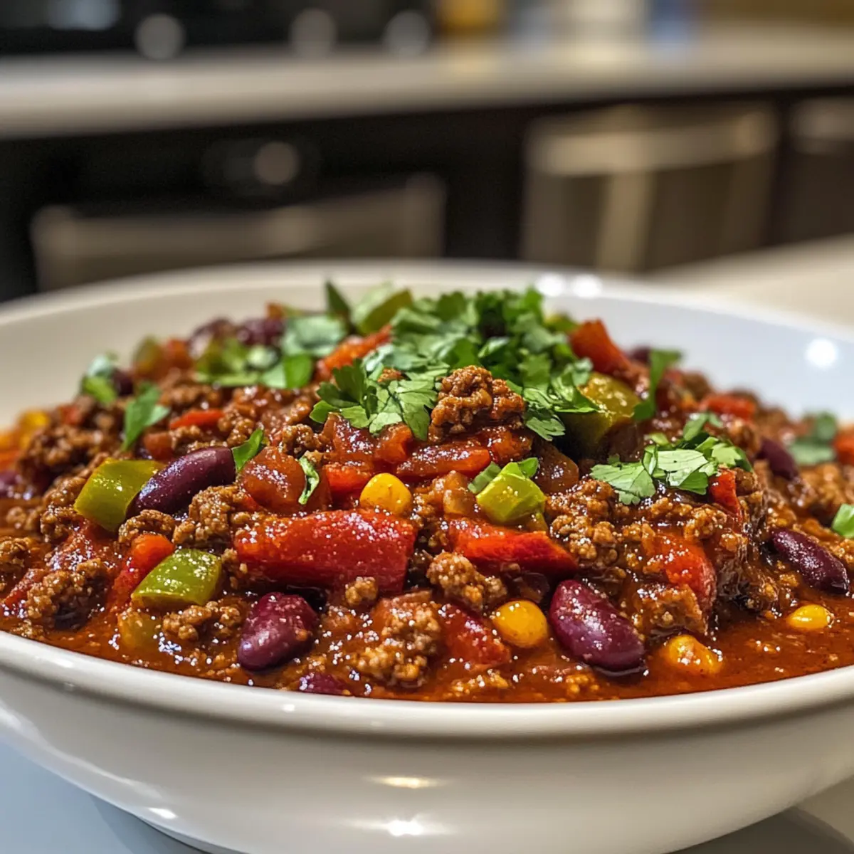 Absolutely! When selecting your ingredients, look for firm, fresh tomatoes without dark spots or blemishes; this ensures vibrant flavor. For peppers, choose ones that feel heavy for their size with smooth skin. For onions, go for a firm texture and a non-soft outer layer. Ripe ground beef should appear bright red and have a fine texture—this is key for a tasty chili.